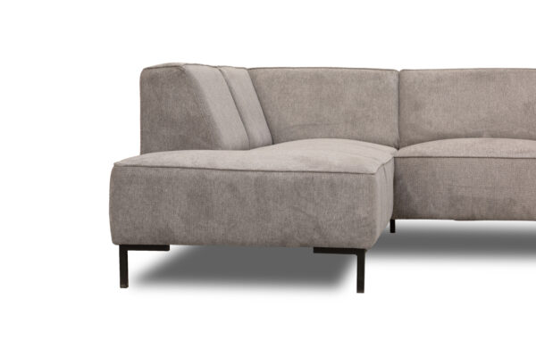 De zwarte metalen poten geven de hoekbank Alicante een eigentijdse, industriële touch en zorgen voor een verfijnde uitstraling. Deze stevige poten maken de bank niet alleen stijlvol, maar zorgen ook voor een luchtige, moderne look die goed samengaat met het landelijke karakter van de stof.